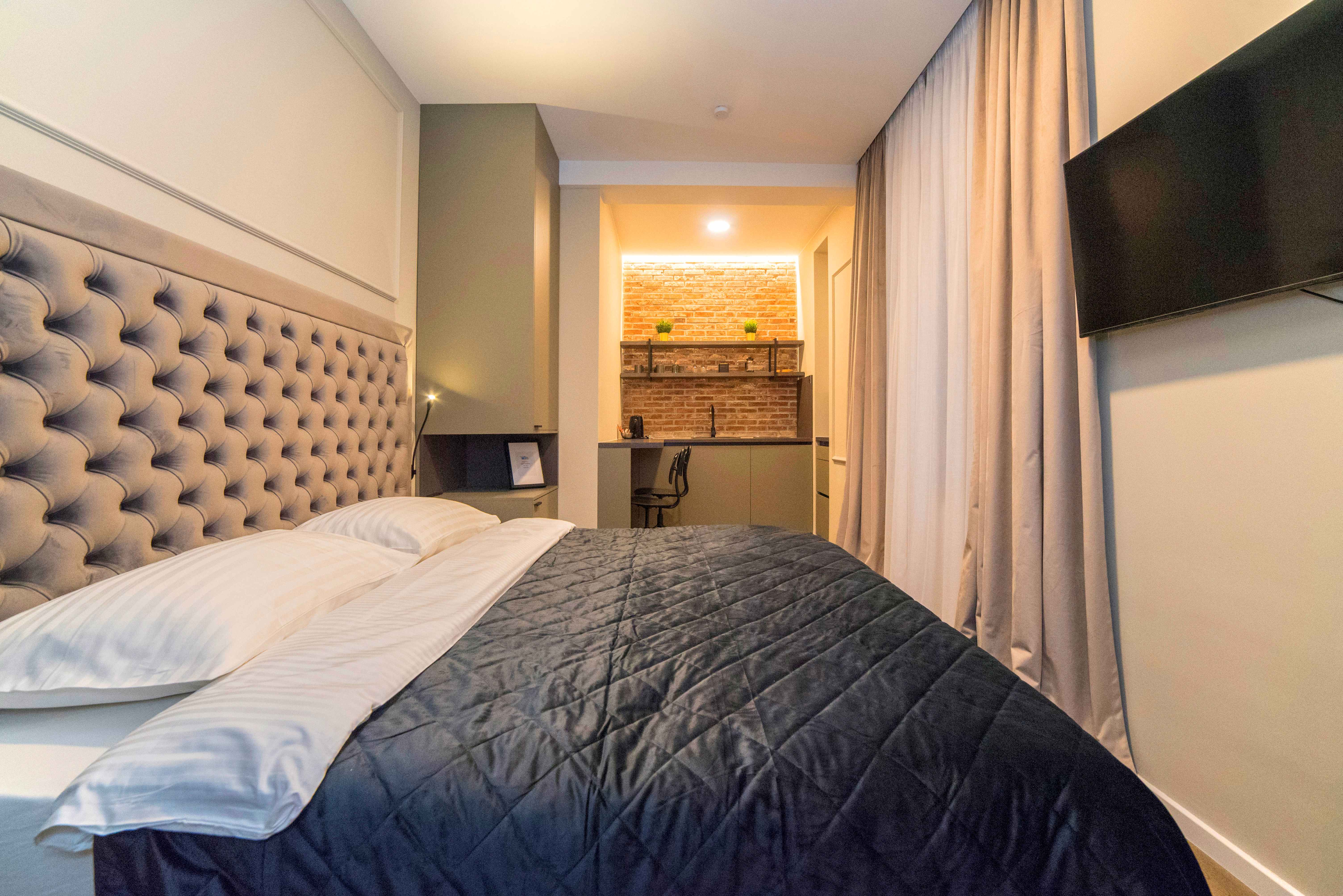 Studio je opremljen udobnim queen-size krevetom, smart tv-om, neograničenim Wi-Fi pristupom te radnim stolom savršenim za obavljanje poslovnih zadataka u mirnom okruženju. Kupaonica je elegantna i besprijekorno čista, s walk-in tušem i osiguranim svježim ručnicima.