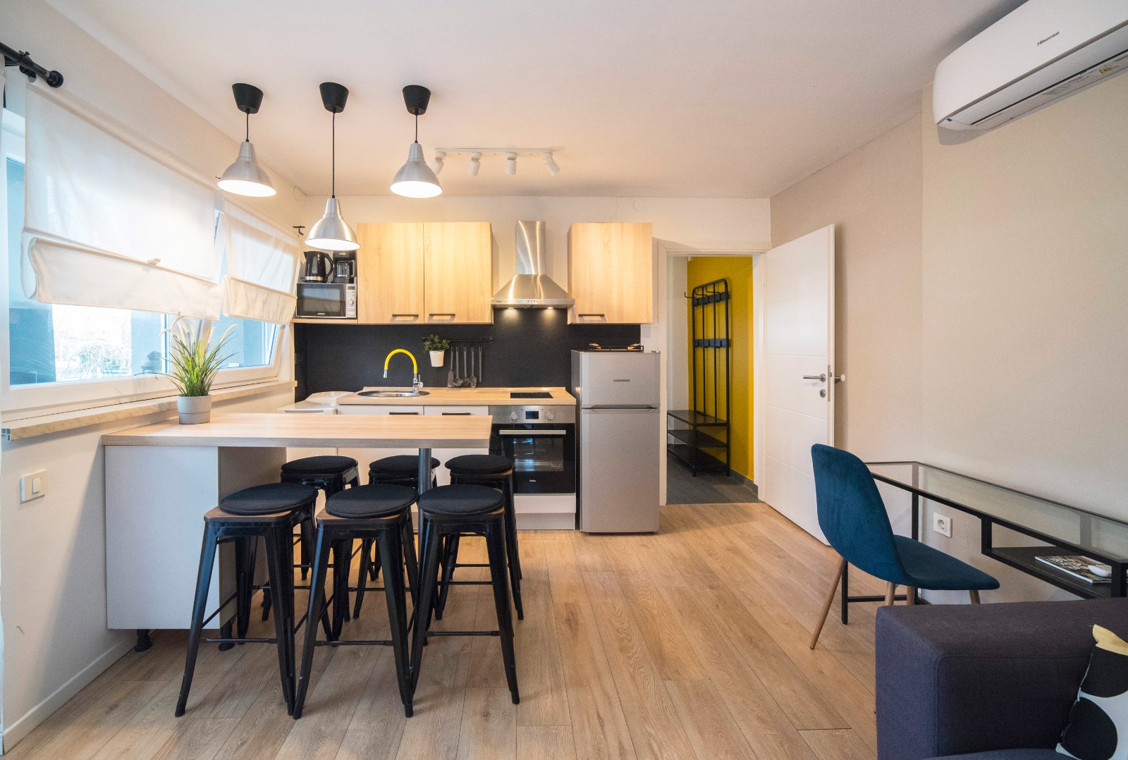 The apartment can accommodate up to 6 guests and features two bedrooms with double beds, as well as a living room with a sofa bed. Guests have access to a fully equipped kitchen, fast WiFi, and everything needed for a pleasant stay.