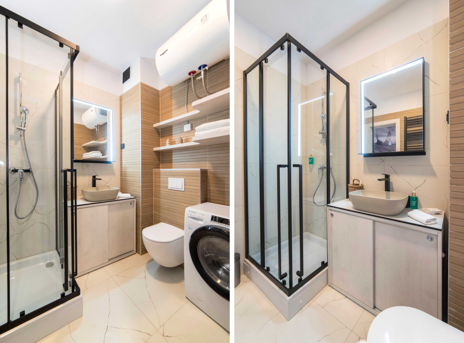 Opustite se u sobi sa queen-size krevetom, ili iskoristite rasklopivi kauč, koji pruža dodatne opcije za spavanje za dvije osobe. Kupaonica je elegantna i besprijekorno čista, s walk-in tušem, veš mašinom i osiguranim svježim ručnicima.